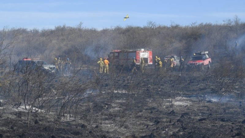 “Se ha trabajado con dos aviones hidrantes, uno de nación y otro de la provincia, y un helicóptero que fue fundamental para distribuir a puntos estratégicos a parte de los más de 170 efectivos que hoy han trabajado” señaló el jefe de la Departamental San Alberto, Jorge Funes.
