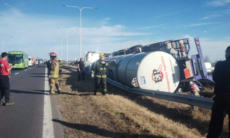 Un camión que viajaba cargado con combustible volcó este miércoles por la tarde en la autopista Rosario-Santa Fe, en principio sin intervención de otros vehículos.